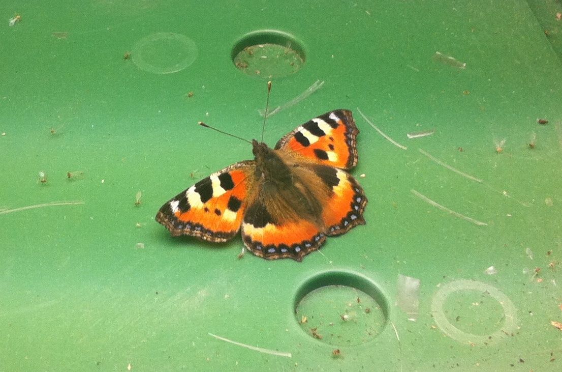 En ekstra førjulsgave fikk jeg i går: En sommerfugl åpenbarte seg på planterommet, midt mellom knoller i vinterdvale og nedskårne fuchsiaer. Vakkert!