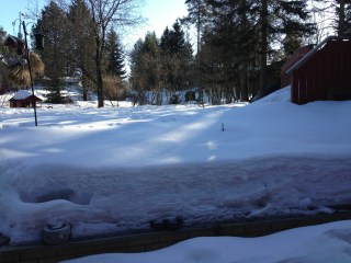 I dag drakk Egil og jeg formiddagskaffe på terrassen for første gang i år. Temperaturen går fortsatt ned til under minus 10 om natten – men opp mot 20 varmegrader i solveggen midt på dagen. Allikevel er det ikke mye som minner om vår her hos oss: Snøen ligger hardpakket i minst en halvmeters dybde både på terrassen og i hagen.