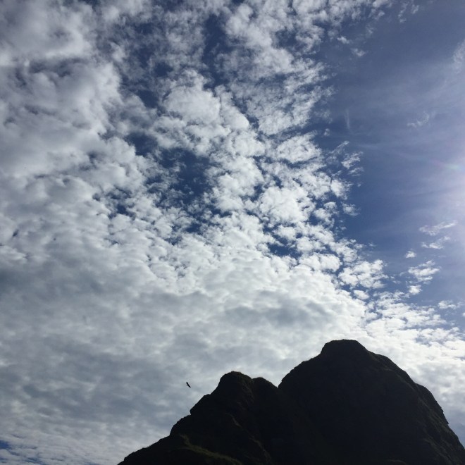 Opplevelsene stanser ikke: På en liten haug, skuende utover havet og en kritthvit, liten strand, sitter dette paret: Han ser ut til å være godt fornøyd med tilværelsen i havgapet, mens hun ser litt mer hutrende ut……..