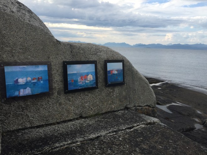 I år er over førti verk av Sigmund Olsvik og Karl Erik Harr overført til værbestandige plater og plassert utendørs: Svabergene byr på utstillingsflater som knapt kunne passe bedre til disse to kunstnerne. Fantastisk vakkert!